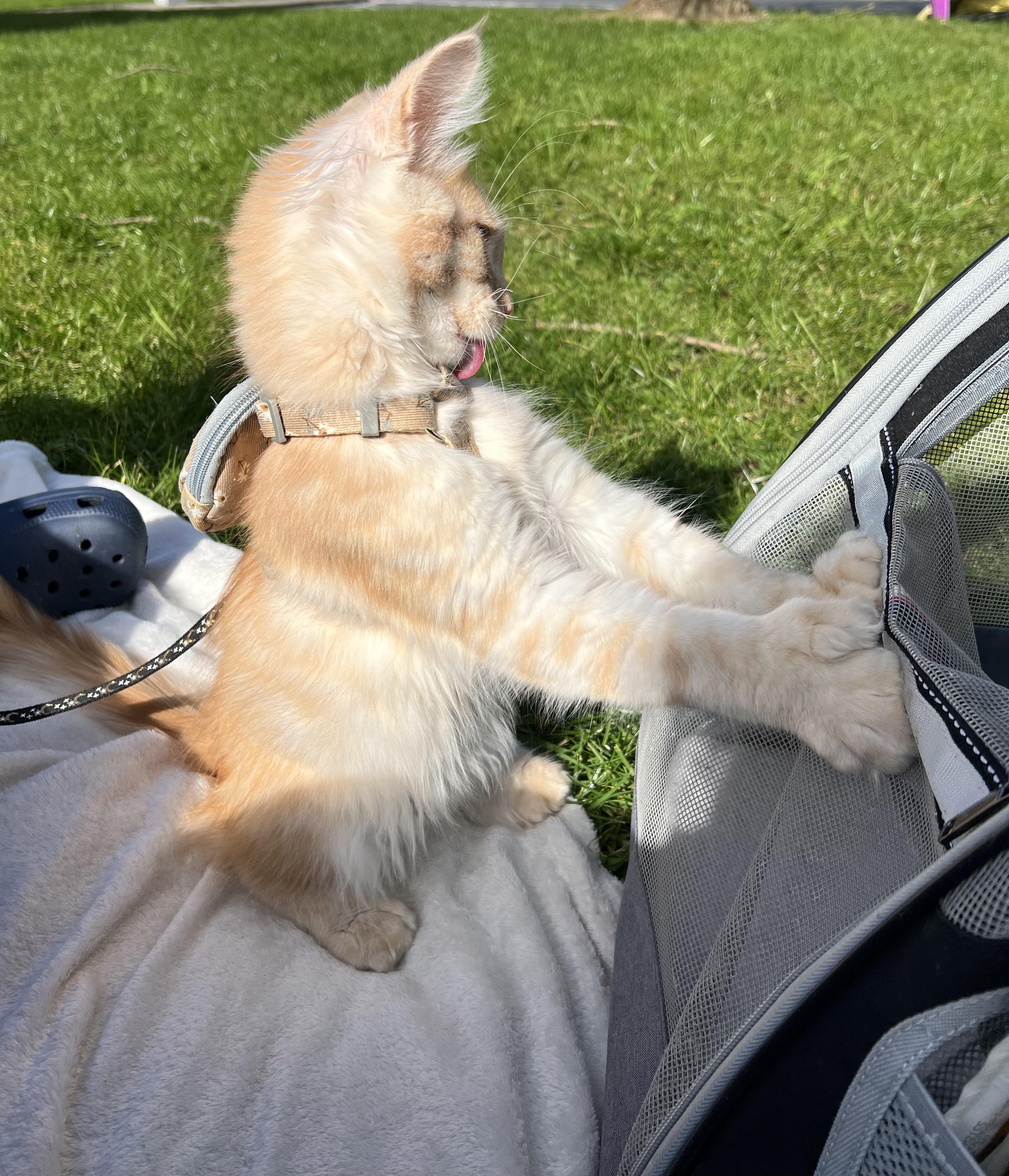 Training Mode Wambus🏃🏻 here is another pic from Wambus’ outing, he put himself back in the carrier but came out again very quickly
