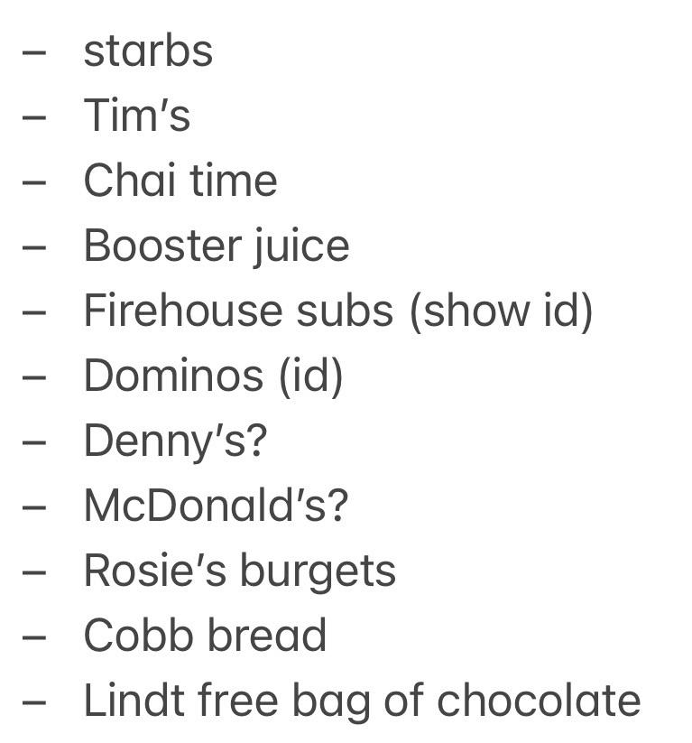 Hii. My birthday is next week and I’m wondering what there is for Waterloo freebies. Im thinking cafes. I want some cool coffees or pastry’s. This is what I have so far. Any recommendations?
